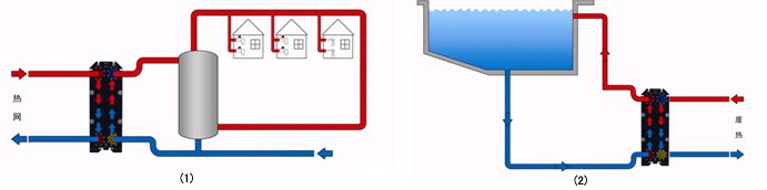 ⑤地源、水源熱泵: 換熱器作為熱泵主機和開放式冷熱源的分離裝置,克服水質對主機等敏感設備的腐蝕。(圖5)