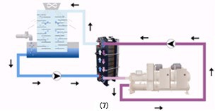 換熱器的使用將開式冷卻循環係統和機組的閉式循環係統分隔開,有效的保護了機組閉式循環係統的潔淨,延長了機組的使用壽命。(圖7)